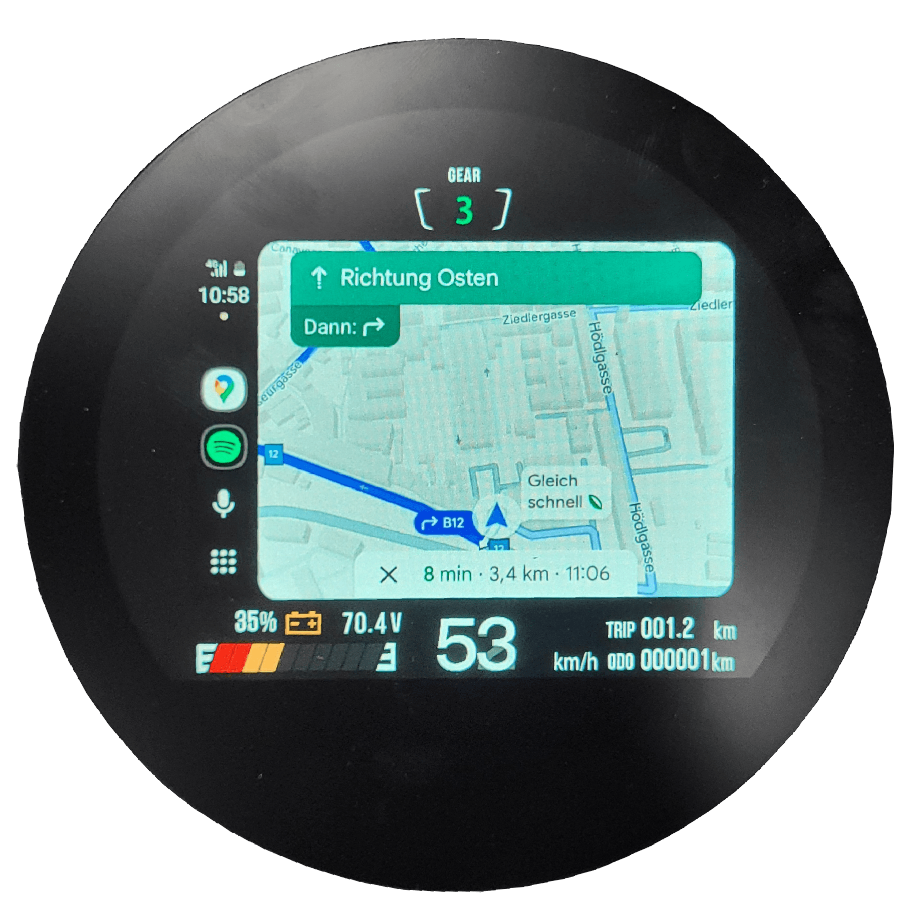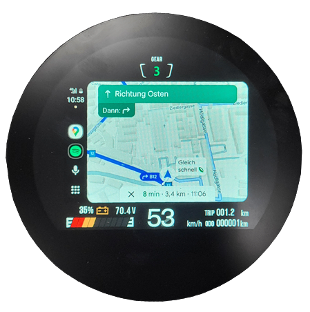 Bei leichtem Bremsdruck lädt Bimie Grazie den Akku auf. Das bringt bis zu 5% mehr Reichweite und schont die Bremsen!