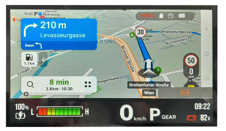 Die eingebaute Dashcam kann die gesamte Fahrt aufnehmen. Diese Funktion ist aus Datenschutzgründen bei der Auslieferung deaktiviert.